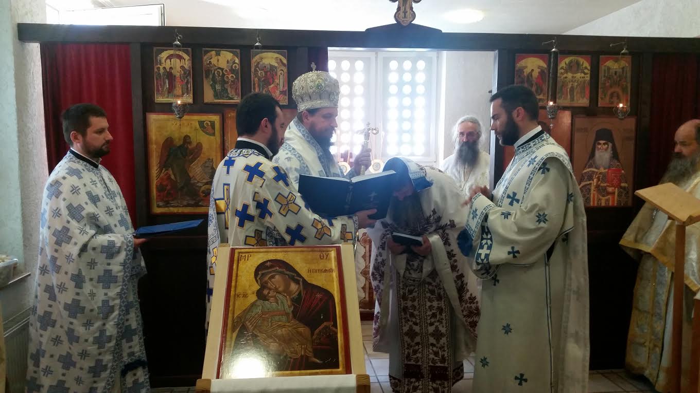 На Литургији, Владика је рукопложио ђакона Матијаса Циренберга у чин протопрезвитера, и Владика Сергије је честитао оцу Матијасу и истакао како велику захвалност дугујемо управо оцу Василију Гролимунду Швајцарцу, као и Немцима оцу Јустину (Рауеру) и оцу Матијасу Циренбергу, за њихово ревновање у православној вери и молитве пред Господом.