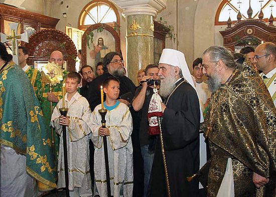свечаног дочека Његове Светости, у храм Свете Тројице