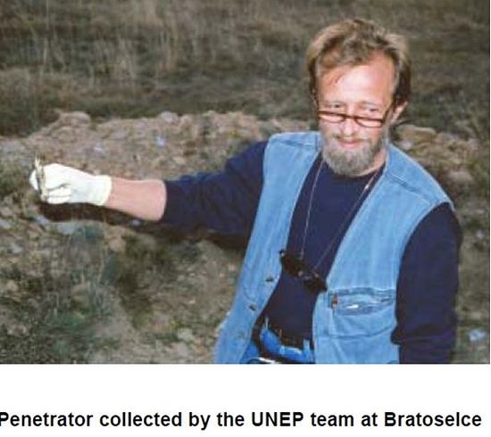 Интересанто је да су тимови Уједињених нација (UNEP) долазили три пута да прикупљају узорке и утврде чињенично стање: у новембру 2000. године посетили су 11 локација, урадили више стотина мерења и сакупили вуше од 300 узорака за анализу [4]; од 27. октобра до 5. новембра 2001. године посетили су Србију и Црну Гору и прикупили 161 узорака биљака, земљишта, ваздуха и воде, и пронашли неколико пенетратора [5]; и од 12. до 24. октобра 2002. године су посетили 14 локација у Босни и Херцеговини и прикупили 132 узорка [6]. Мада се пре ових посета тврдило да после удара и сагоревања пенетратора уранијумска прашина врло кратко остаје у ваздуху, као и да треба јако дуго да пенетратори кородирају, односно да осиромашени уранијум доспе до пијаћих вода, у овим извештајим је изнето:
