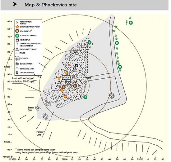 Према свим информацијама до којих смо могли да дођемо [3–7], у току бомбардовања 1999. године пројектили са осиромашеним уранијумом нису коришћени северно од Врања. Већина ових извештаја који су припремљени у оквиру Програма заштите животне средине Уједињених Нација (UNEP) се могу наћи на сајту: UN Environmental Programme (UNEP), Post Conflict and Disaster Management Branch (http://postconflict.unep.ch/)