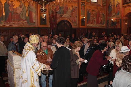 На пету недељу по Васкрсењу Христовом, недељу Самарјанке, Његово Преосвештенство Епископ далматински Господин Фотије, администратор Епархије загребачко-љубљанске служио је свету архијерејску Литургију у Саборном храму Преображења Господњег у Загребу. Појањем је одговарао хор Саборног храма, а присутни су били и својим молитвама у богослужењу учествовали благочестиви вјерници загребачке парохије. Ријечима поуке, тумачећи смисао новозавјетне приче о Христовом сусрету са женом Самарјанком, обратио се Епископ Фотије: данас смо се сабрали, на светој Литургији, драга браћо и сестре, рекао бих да доживимо оно што је доживјела жена Самарјанка на Јаковљевом студенцу, о чему смо чули у данашњем одјељку светог Јеванђеља, о сусрету жене Самарјанке и Господа нашега Исуса Христа. Та прича је веома значајна за нас, за наше спасење и за икономију читаве Цркве Божије. Житије ове жене каже да се она касније покајала, крстила од Апостола и постала проповједница јеванђеља Христовог и мученички да је пострадала у Риму. Назива се света мученица Фотина, што значи просветљена. Она се тога тренутка, у разговору са Христом просветила, њен ум се просветио, њено срце се просветило, њено цјелокупно биће се просветило. Она се напојила ријечју вјечнога живота. Ето, шта значи један сусрет са Христом. Потпуно мијења човјеково биће, човјекову личност. Ако је до јуче ишао једним путем, сада постаје боготражатељ.
