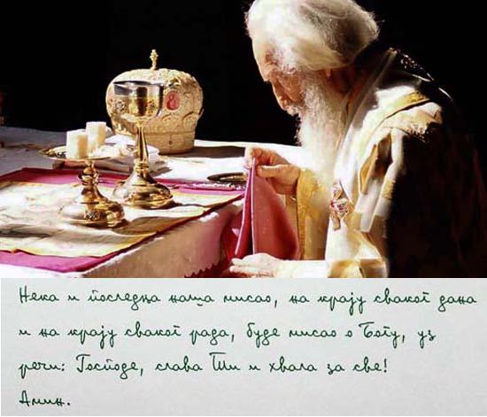 Ако нас порази и понижења не озлоједе, ако у трпљењу сабирамо снаге да се не поништимо, наша велика патња може нам бити велико чистилиште за препород, без кога нам нема ни подмирења насушних потреба ни правог духовног живота. Безнађе није само пораз, већ порок обездушеног човека, коме је лакше препустити се немоћи него упорно, истрајно борити се и молити, сваког дана, да се сачува и спасе великомученички народ наш. Ниједна служба њему не може бити само повремена или успутна, већ заветовање да она мора бити непрестана, предана, Богу приступачна” - речи су блаженопочившег патријарха Павла којих се сећамо из књиге Сведочим само, објављене 1996. године (издавач: Универзитетска библиотека Приштина)