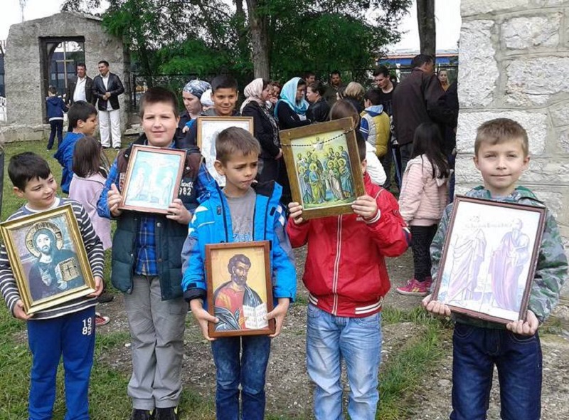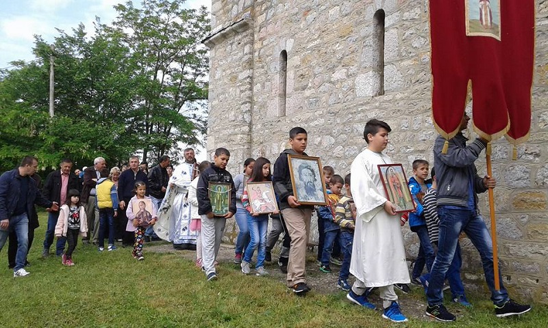 После свете Литургије обављена је и литија око цркве, а на челу литије су ишла деца са иконама и барјацима.