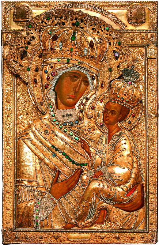 Године 1382, за царовања великога кнеза Димитрија Јовановича, при свјатјејшем митрополиту целе Русије Пимену и при новгородском архиепископу Алексију, појави се у Русији пречесна икона Пресвете Богородице, која на левој руци Својој држи Предвечног Младенца – Господа нашег Исуса Христа. Ово јављење догоди се на следећи начин.