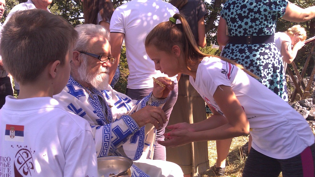 У реду за нафору сви, а оцу Миленку приносе столицу. Побољева често у последње време, дијабетес му не да мира, али данас и ова врућина. Прихвата и седећи дели нафору. Нико не замера, сви прилазе, целивају крст и руку свештенику, примају нафору и чекају остале па да се крене назад, кућама својим.