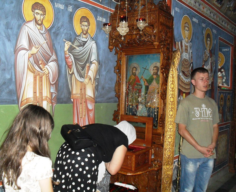 Све до касно поподне у цркви су се смењивали свештеници и читали молитве болеснима, а отац Дионисије, још један Зочишки калуђер је, са младим људима који су помагали у припреми славе, водио рачуна, да све прође без проблема и да свако из манастира оде испуњен благодаћу Светих Врача.
