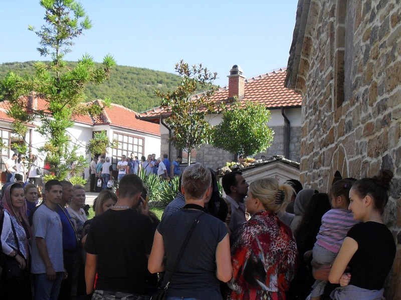 Мноштво народа је пришло да се причести, а братство манастира са домаћинима славе, расељеним Ђаковчанима, је припремило послужење за све који су дошли на славу.
