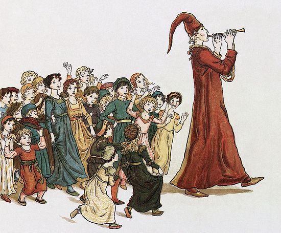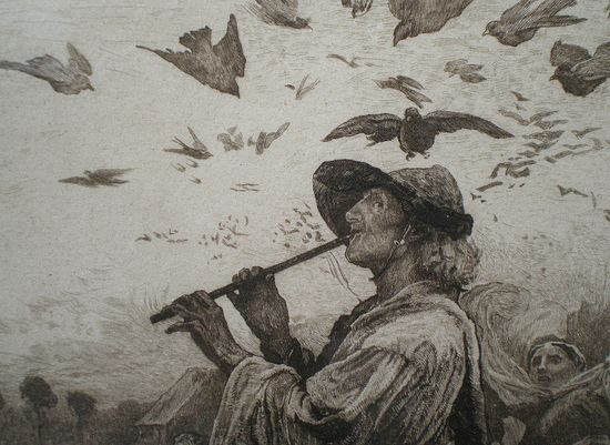 Мени пада на памет други лик, који исто воли да свира фрулу и да предводи поворку, - чаробни фрулаш, који је некада одвео децу из града.