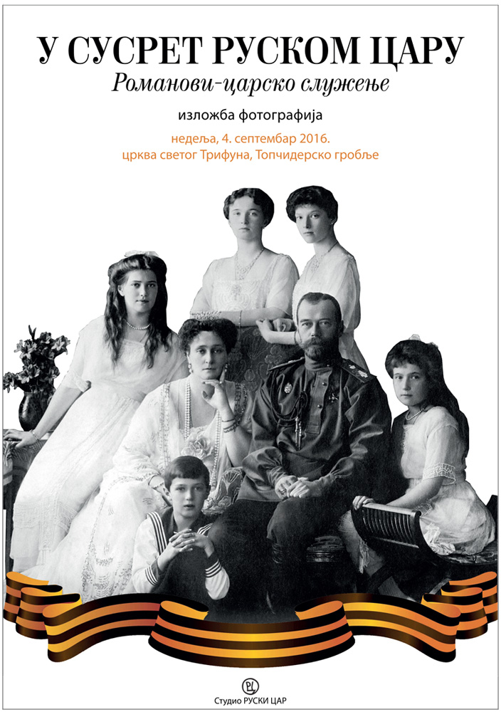 У недељу, 4. септембра, у цркви Светог Трифуна на Топчидерском гробљу, након Свете Литургије биће отворена изложба фотографија „У сусрет Руском Цару“. Изложба је посвећена династији Романових, последњој царској и императорској породици која је владала Русијом од 1613.г. до 1917.г.
