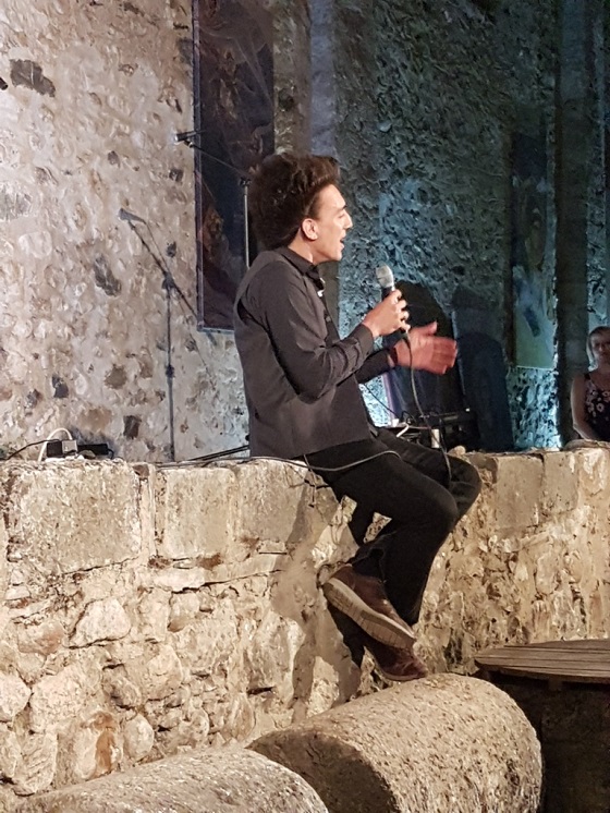 Било је ту људи који нису са овог поднебља, неколико Француза, туриста. Долазили су у току дана када сам имао тонску пробу и заинтересовали се и дошли су увече. Мало сам испробао и свој закржљали француски, пошто сам га учио у гимназији давних деведесетих. Извуко сам се, мада би ме професорка изрибала, пошто је имала обичај тада то да ради, била је захтевна, и баш зато ми је нешто остало. Синоћ сам неке ствари мало и преводио, додуше више на енглеском, мало на француском, чисто да их упознам са тим одакле долази наша музика и шта сад ја радим, да ли су то традиционалне песме, које су инспирисане нашом традицијом и успели смо да, ја и моји инструменти и публика ( ја увек персирам, пошто нисам сам у свему томе), да створимо диван осећај заједништва и једну дивну енергију која је остала као једно дивно вече које смо поделили.