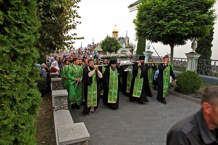 „У крсном ходу, уз певање стихира и читање молитава, братија манастира и верници пошли су из Пешчерског храма и ходили улицама града наоколо Печерске лавре. Молитвени ход пратила су три хора: хор манастирске братије, велики мушки хор и хор семинариста. Литија је окончана код Преображенске Саборне цркве, у којој положене мошти преподобног Јова,“ казује Митрополит Владимир.